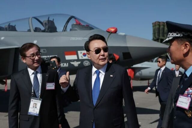 ↑開幕式を終えた後、KF-21について視察、質問をする尹錫悦(ユン・ソギョル)大統領
