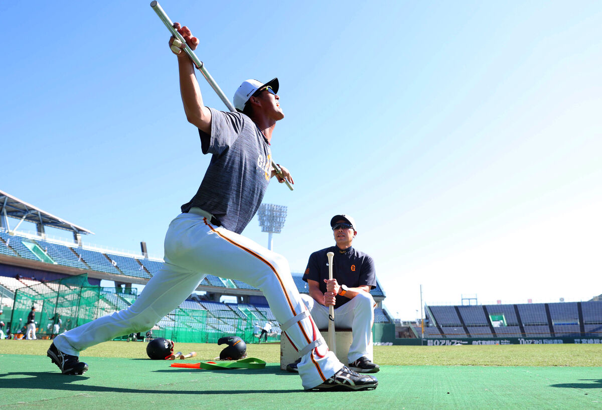 愛のこもった密着マークを受けた。午前中には指揮官がバットを握り、外野を左翼から右翼まで走るアメリカンノックを受け、ヘトヘト。「見てくれることはありがたいし、うれしいことなので、何とか食らいついた」。午後は下半身のトレーニング、大股開きのティー打撃で指導を受けた。技術的な助言もあり、「すり足でタイミングを取る時に止まる時間をつくらないように言われました」。ともに心技体を鍛え抜いた。