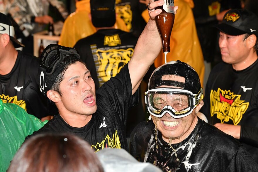 「3月31日に(ペナントレースが)スタートして、俺自身もまさかこの日がくるとは思ってなかった」と指揮官が〝本音〟を明*と、ナインたちからは「オイオイオイオイ!」「ブー!」と容赦ない罵声で応酬。「本当は9月14日のためにやってきたんやけどね。ご褒美が来たんでね、今日はみんな思い切り暴れて、ビールかけしてください。みんなおめでとう!」とねぎらうと、選手たちは無礼講の「オカダ! オカダ!」の呼び捨てコールで応えた。