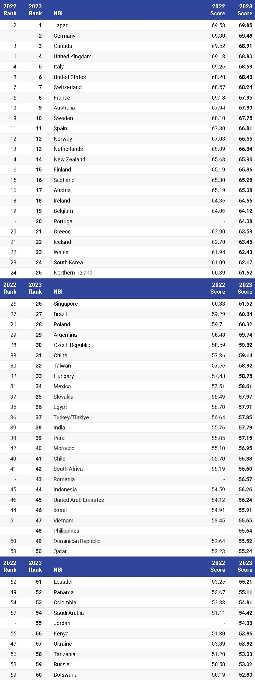 【国際】国家ブランド2023 日本が世界1位 韓国24位 中国31位
