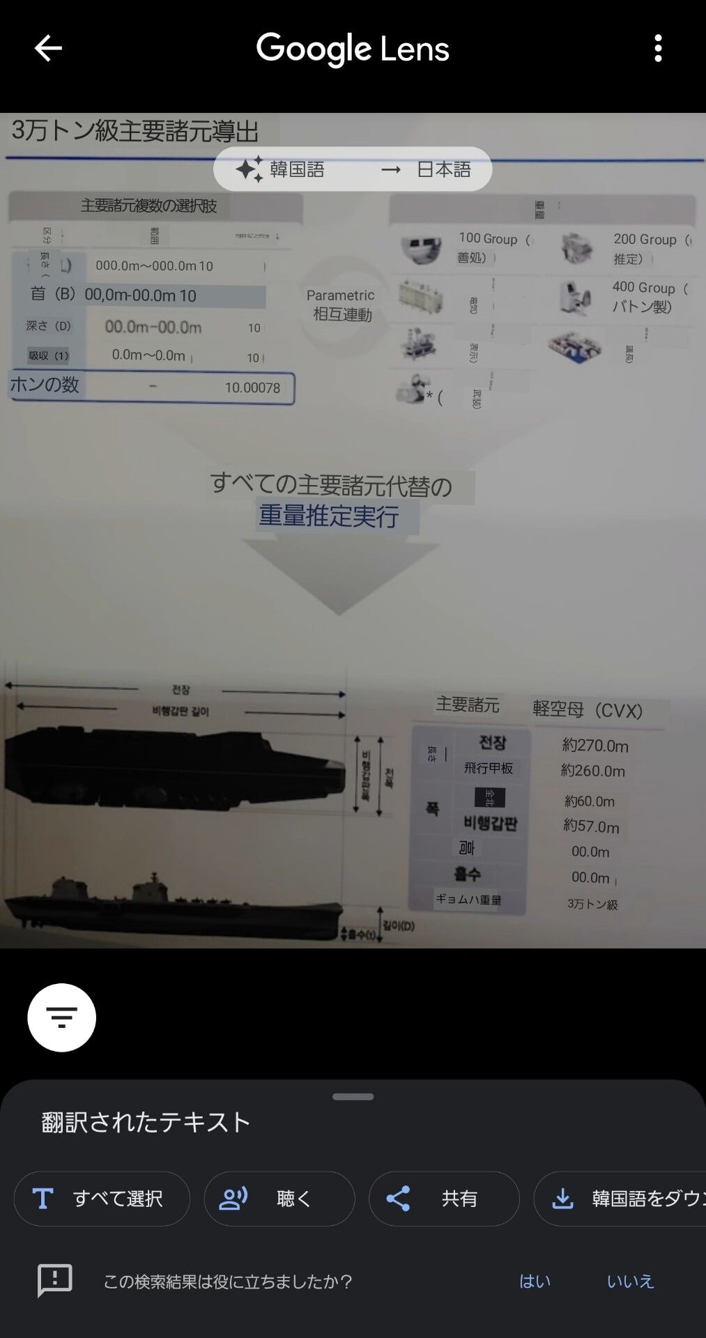 韓国型空母(CVX)の排水量は3万トンクラスで全長約270m×全幅約60m、将来的にカタパルトやアレスティング・ワイヤーに交換することを視野に入れた設計で船首に設置されるスキージャンプはモジュール方式を採用、さらにアングルド・デッキへの拡張にも対応しているらしい。