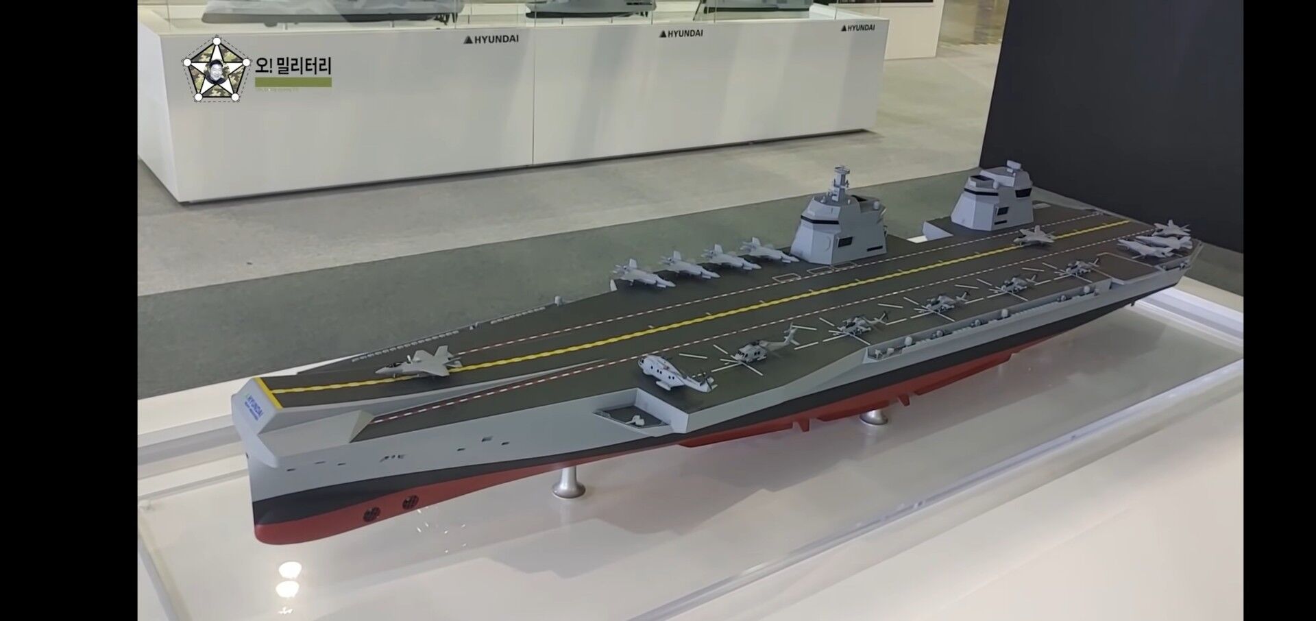 韓国で開幕した海上防衛機器の展示会「釜山 MADEX2021」に海軍の空母を受注した現代重工業が「韓国型空母(CVX)」の縮小モデルを初展示、大きな注目を集めている。