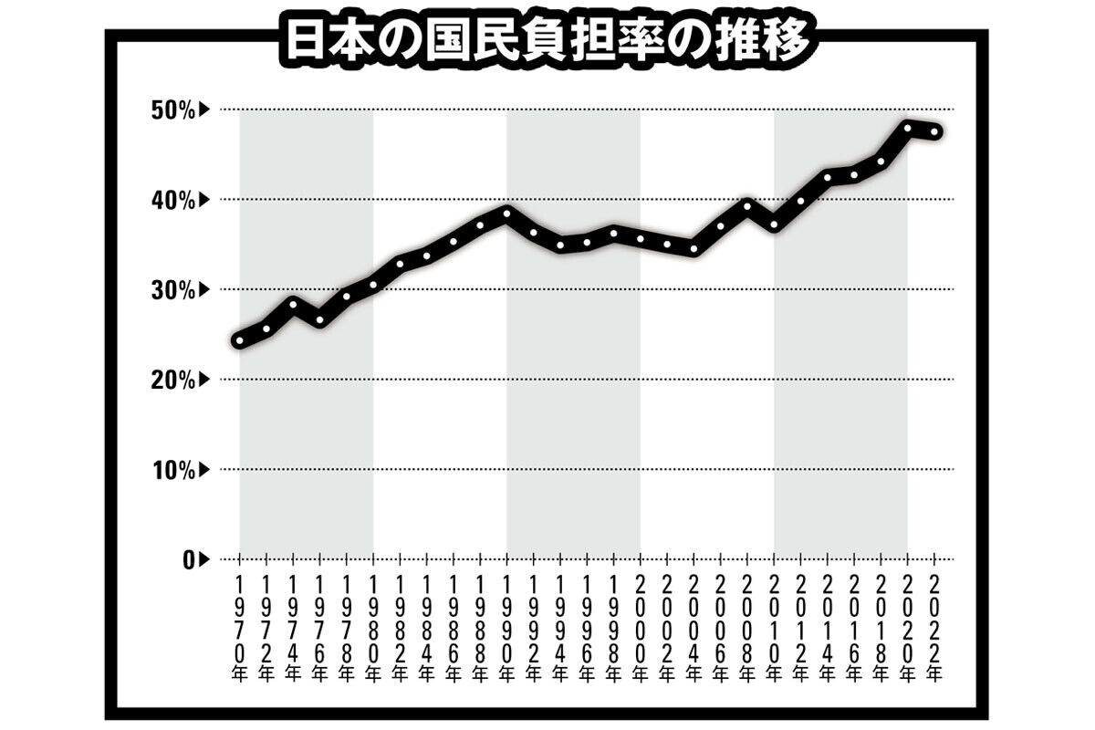 昨年度の2022年度は、負担率が47.5%と、国民所得のほぼ半分を占めています。