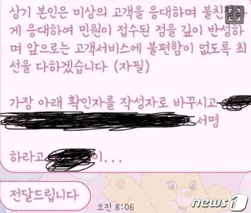 投稿によると、女性は7月、総務チームからてんまつ書の提出を求められた。顧客のクレームが理由だった。
