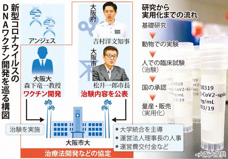 アンジェスは、ウイルスの遺伝情報を利用する「DNAワクチン」というタイプのワクチンの開発を進め、宝ホールディングス傘下の「タカラバイオ」(滋賀県草津市)が生産する計画だった。