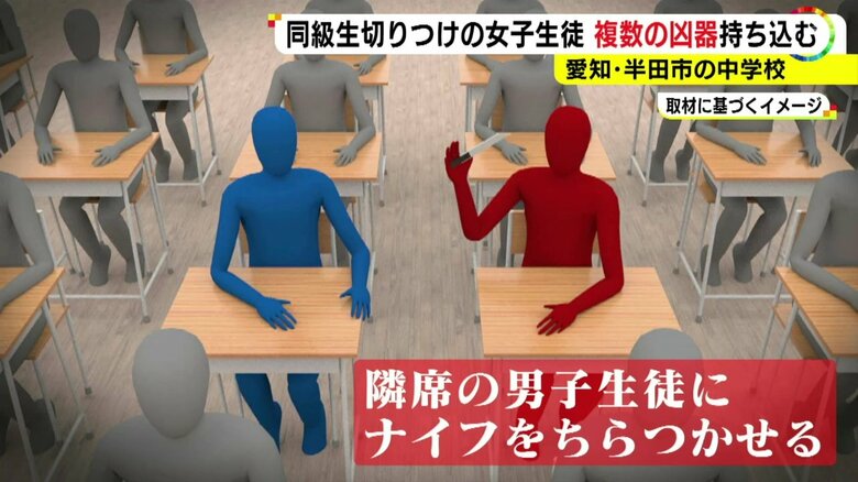 事件が起きたのは、国語の授業が始まって20分ほど経ったころ。女子生徒は隣の席に座っていた男子生徒に対して、ナイフをちらつかせたという。