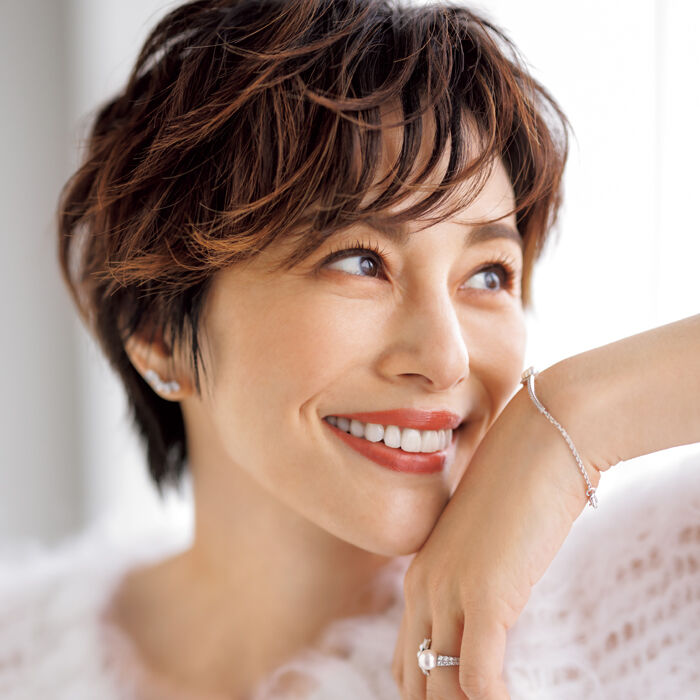 ブルガリのジュエリーについて、「とてもゴージャスで、身体に吸い付くようにピタッとくっついてくれる。違和感が無いですね」と絶賛。「忘れて付けて帰ってしまいそうなくらいナチュラルです」と笑顔を見せた。