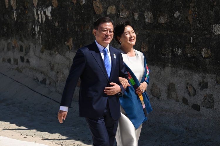 サミットに花を添えたのは、エリザベス女王とバイデン大統領夫人のジルさんだった。女王は各国首脳7人との写真撮影で、横に立つジョンソン氏に「楽しそうにすべきかしら」とユーモアたっぷりに尋ねて雰囲気を和らげ、ジルさんは背中に「LOVE」と書かれた濃紺のジャケットを着て、「アメリカから愛を届けに来ました」とG7の連帯と団結を呼びかけた。教育学博士の面目如実といったところだ。それに比べて文在寅夫人の金正淑(キム・ジョンスク)さんは全く見せ場がなかった(もっとも、菅真理子夫人も出番はなかったが)。