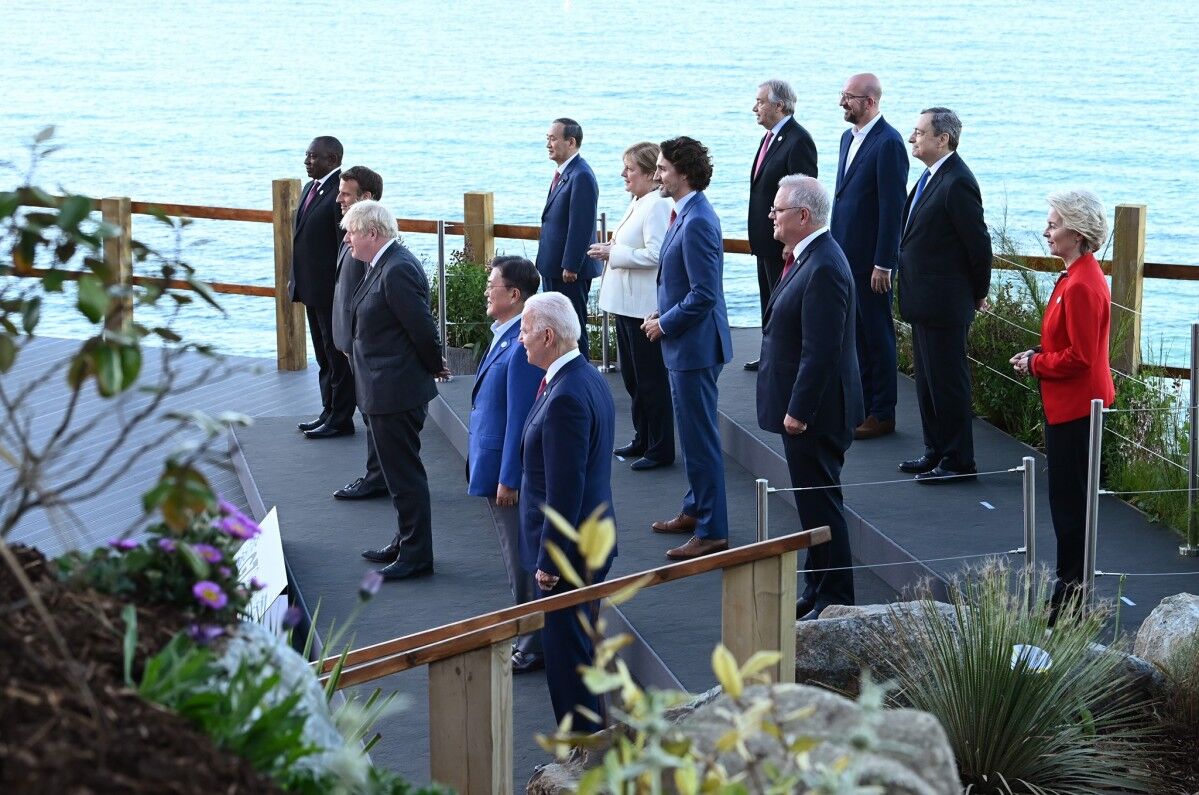 2021年6月16日、韓国・朝鮮日報は「韓国の地位?文大統領がG7の写真で最前列に立った理由は」と題する記事を掲載した。