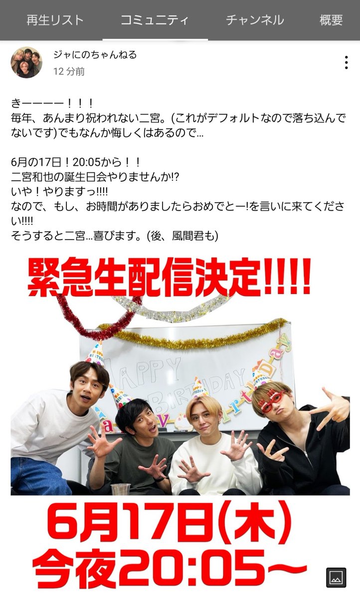 17日に、二宮和也さんの誕生日を記念した緊急生配信が行われました。