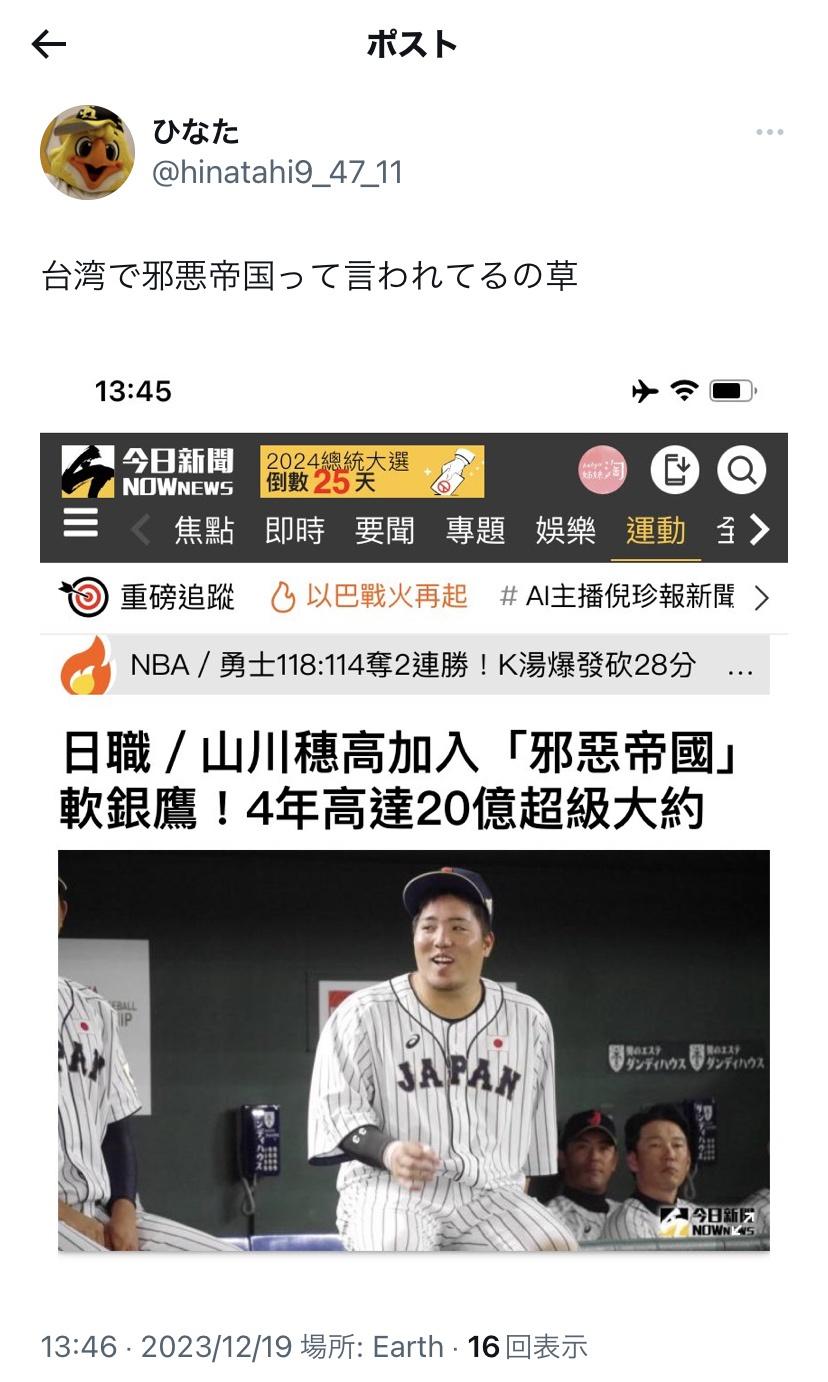山川穗高加入「邪惡帝國」!!!!←何度見ても字面で笑うwwww