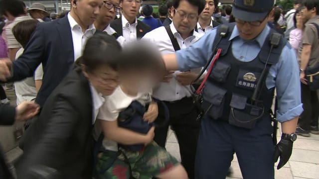 しかし、それぞれ別の場所から声を上げた大杉雅栄さんと桃井希生さんに対して、警備にあたっていた北海道警は力づくで排除した。そればかりか、別の演説会場に向かう2人を執拗に付け回した。