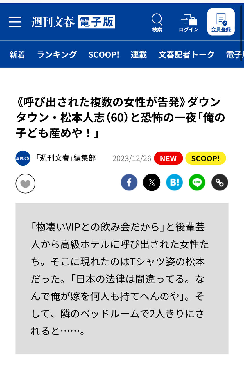 ダウンタウン松本に文春砲wwwwwwwwwww