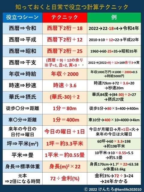「西暦から和暦にするときは、西暦の下2桁から25を引けば昭和、12を足せば平成、18を引けば令和となる」