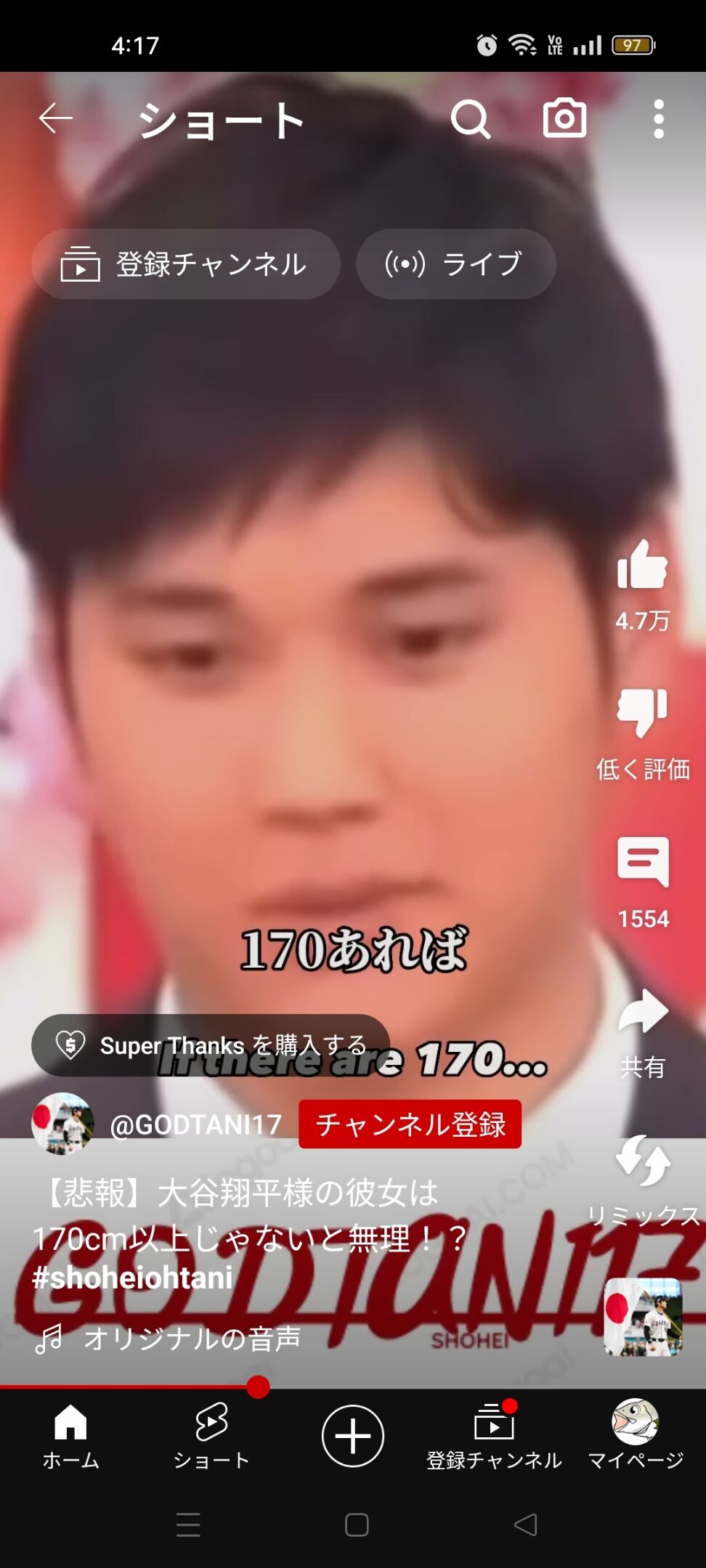 大谷翔平(193cm)「僕が身長高いので、結婚相手も出来れば高い方がいいですね。170cm以上はほしい‥」