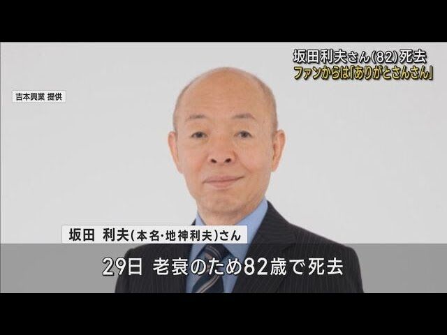 @livedoornews【訃報】坂田利夫さん死去 82歳 news.livedoor.com/article/detail… 29日に老衰のため大阪市内で死去。前田五郎さんとの漫才コンビ「コメディNo.1」で全国区の人気を誇り、「あ~りが~とさ~ん」「あ、よいとせのこらせのよいとせのこらせ」など数多くのギャグでも知られた。 pic.twitter.com/A66ZNnkbqg