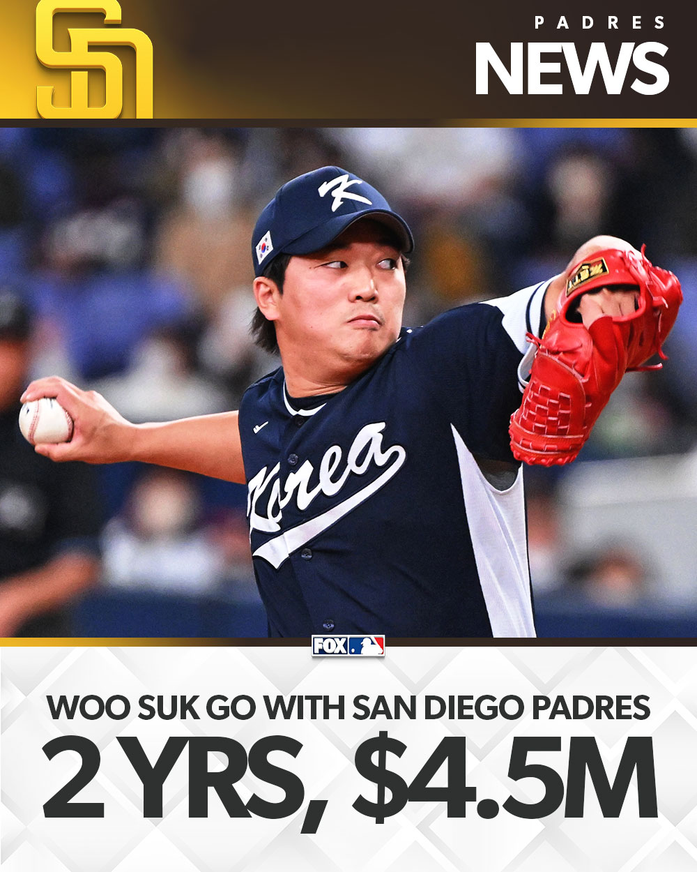 Korean reliever Woo Suk Go and the Padres agree on a 2-year deal worth $4.5M, per @Joelsherman1 pic.twitter.com/8O24KZFDve