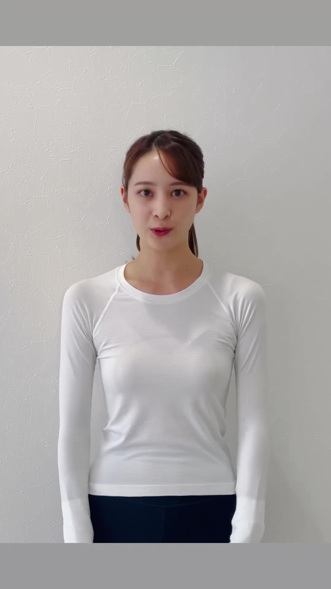 ピタピタの長袖Tとレギンスで新年の挨拶をした後呂有紗アナのブラ線が透けていました! なぜか筋トレも披露! GIF動画&明るさ調整版付きで! [2024年1月3日 Instagram]