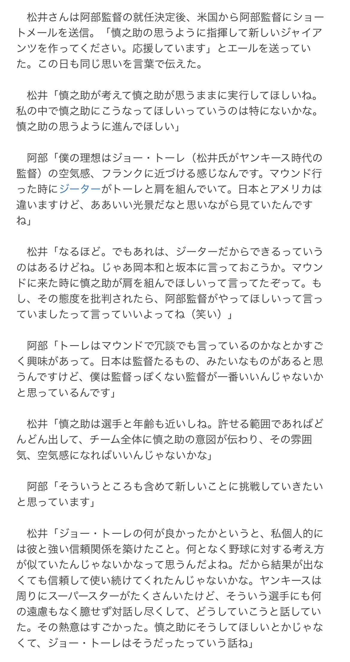 【巨人】阿部監督「理想の監督はジョー・トーレ、監督っぽくないフランクな監督になりたい」