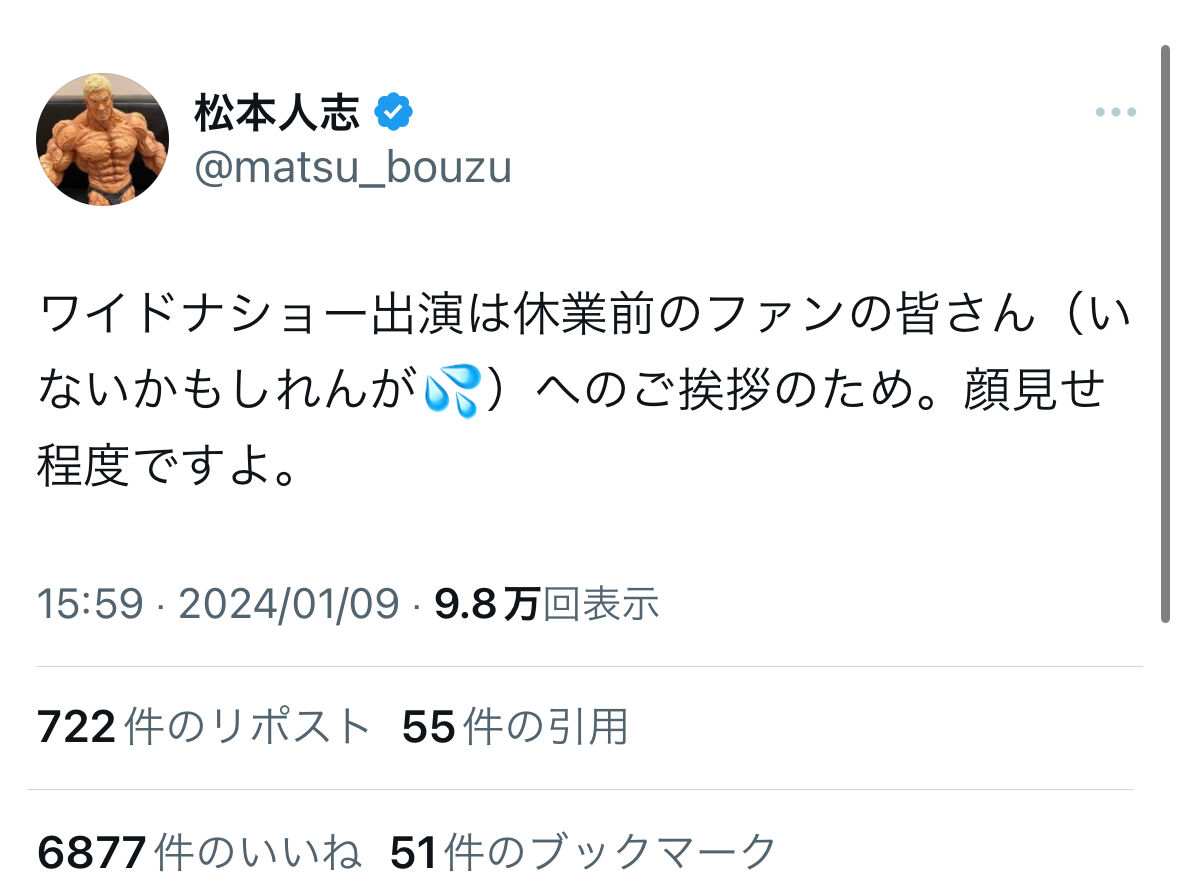 — 松本人志 (@matsu_bouzu) January 9, 2024