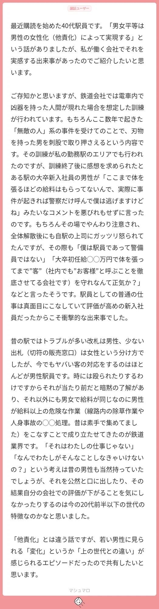 「男女で給料同じなのに不平等っすよね」