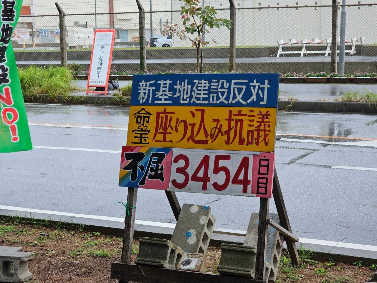 名護市辺野古の米軍キャンプ・シュワブゲート前に設置されている、新基地建設反対の座り込み抗議日数を記録した看板がなくなっていることが9日までに分かった。