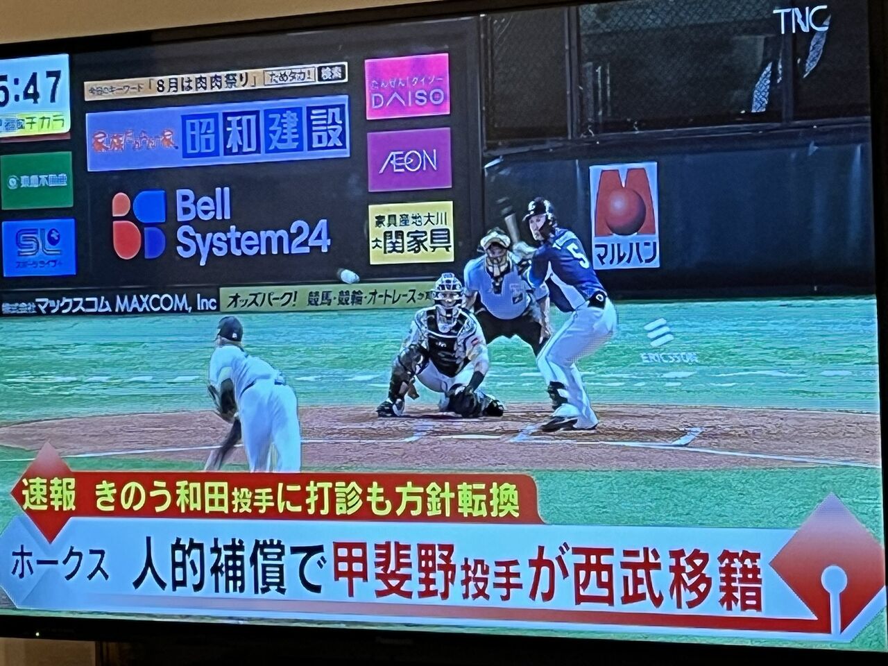 【速報】ホークス甲斐野投手が西武ライオンズに移籍 山川穂高選手の人的補償 和田投手に打診も方針転換