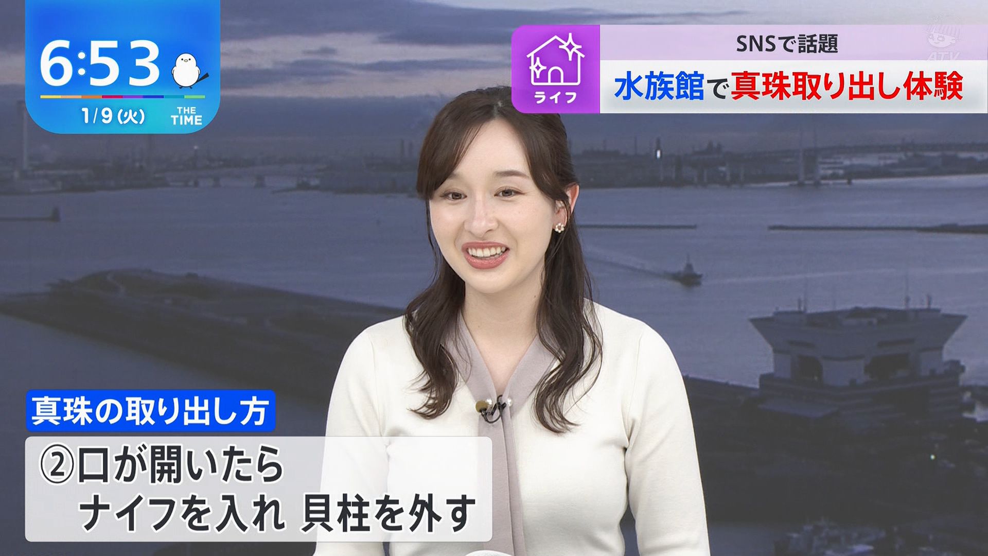 ニットの胸元がセクシーだった宇賀神メグアナを! [2024年1月9日 THE TIME,]