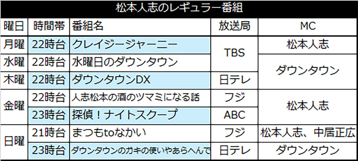 お笑いコンビ「ダウンタウン」の松本人志(60)の休業宣言で、テレビ業界に激震が走っている。7本もあるレギュラー番組は今後どうなるのだろうか。