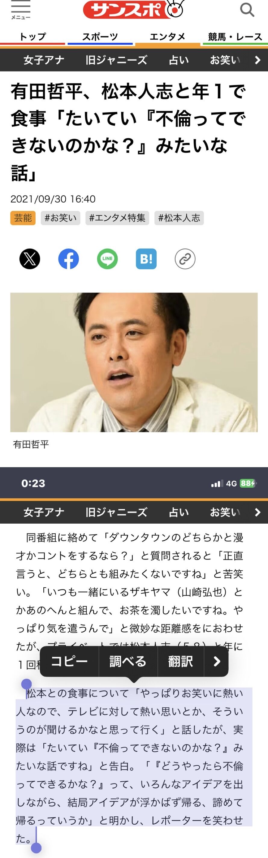 有田哲平、松本人志と年1で食事「たいてい『不倫ってできないのかな?』みたいな話」