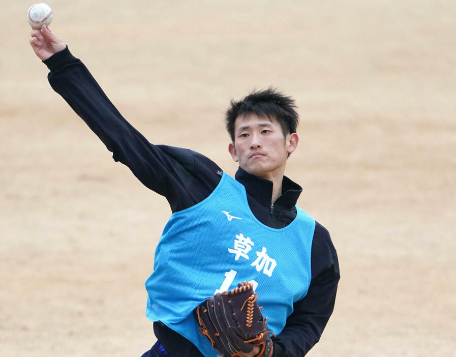 担当の正津英志スカウト(51)は草加の魅力について「タフなところ。3年秋から投げ込んで投げ込んで、力をつけてきた。調子が悪くてもゲームを作れるところを評価しています。いつ見てもしっかり試合を作る」と語った。