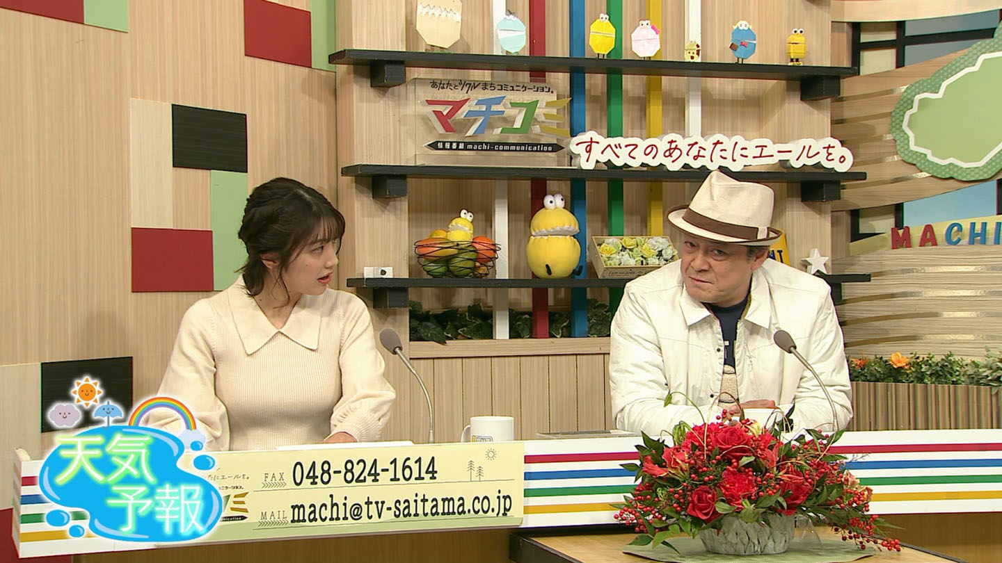 テレビ埼玉・塚田舞アナのニットがセクシーでした! GIF動画付きで! [2024年1月17日、10日 マチコミ]