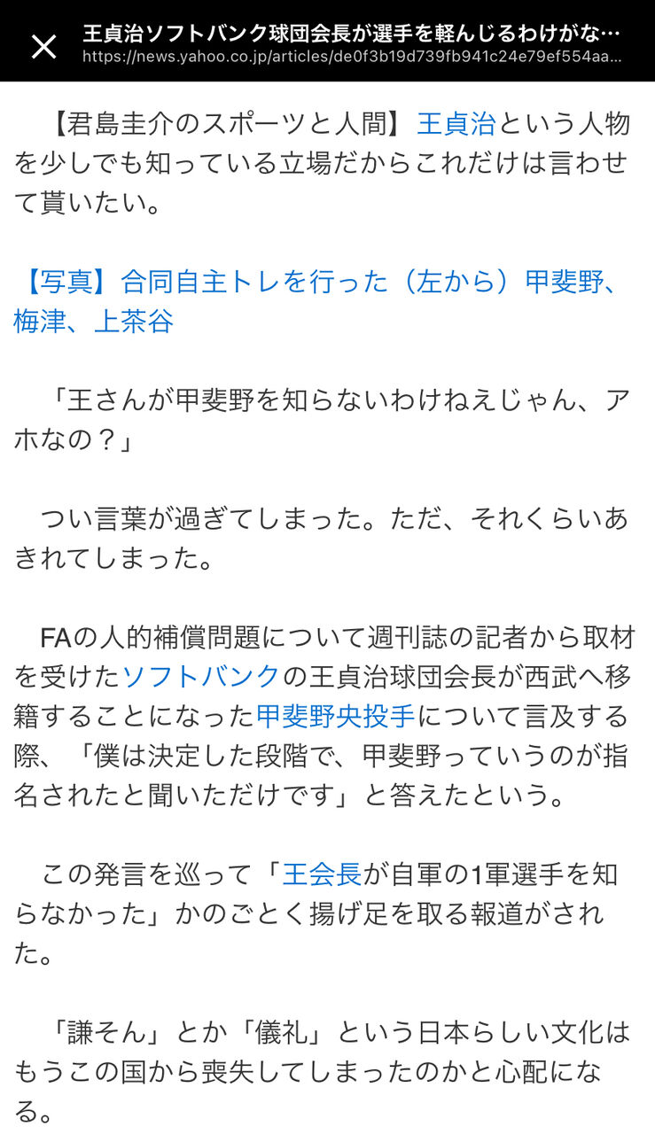 【朗報】スポニチ記者「王さんが甲斐野を知らないわけねえじゃん、アホなの?」