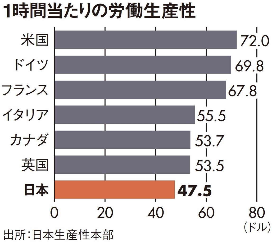 2023年の日本の名目国内総生産(GDP)は世界3位から4位に落ちる見通しだという。GDPとは年間に生み出された付加価値の総額で、一国の経済活動の規模を知ることができる。これを就業者数で割った値が「労働生産性」で、どれだけ効率的に富を産出しているかの指標となる。