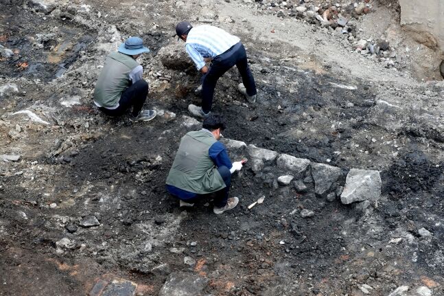 ▲ソウル市鍾路区仁寺洞79番地の公平区域都市環境整備事業敷地で29日午後、文化財庁、首都文物研究院など関係者らが遺跡の発掘調査を行っているところ。/写真=聯合ニュース