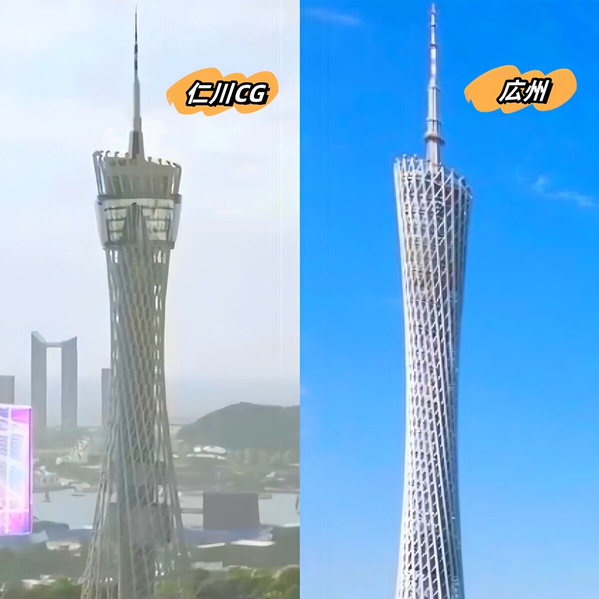 劉正福(ユ・ジョンボク)市長は「仁川と金浦のランドマークとなる」と説明したが、その広報映像を韓国メディアが報じると、韓国のネット上では中国広東省広州市にある広州タワーに酷似しているとの声が上がった。