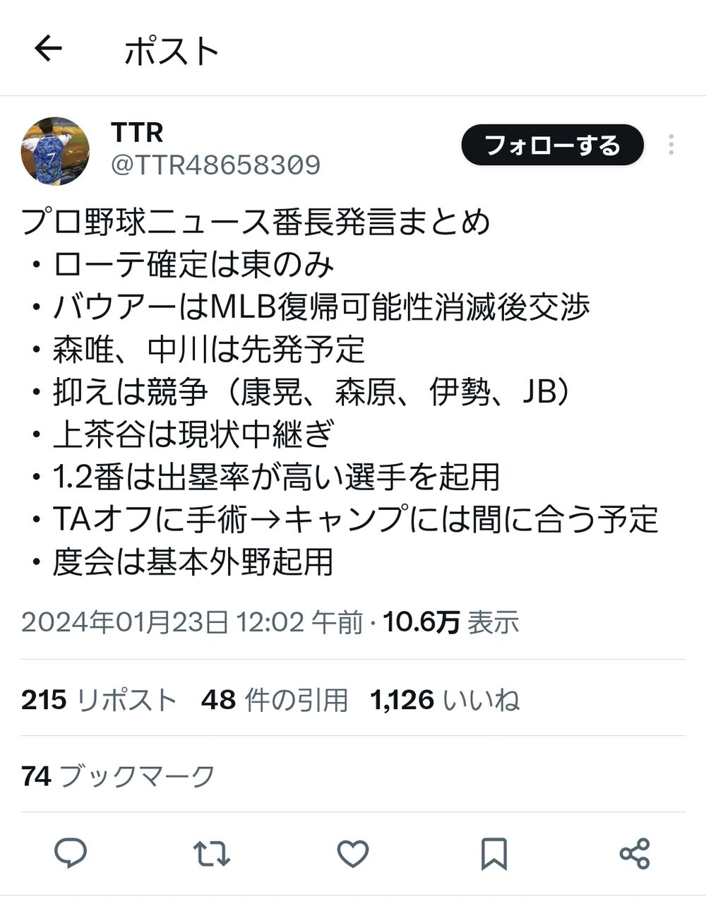【悲報】バウアー、横浜に残留交渉すらまだされてない模様