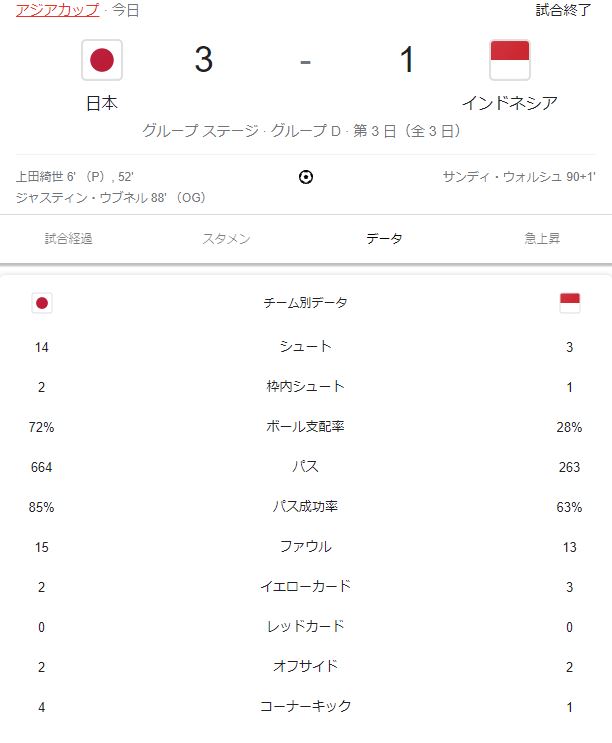【悲報】日本vsインドネシアのスタッツ…枠内シュートが2本だった件wwwwwwww