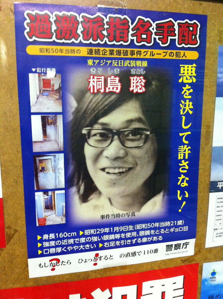 1975年5月には「東アジア反日武装戦線」の「狼」「大地の牙」「さそり」の3つのグループのメンバー8人が逮捕されていました。