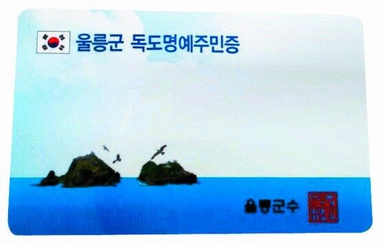 独島名誉住民証は独島の領有権強化の広報策である。名誉住民証の外見は一般の住民登録証と似ている。サイズは横8.5cm、縦5.4cmで、鬱陵(ウルルン)郡首の役印が押されている。