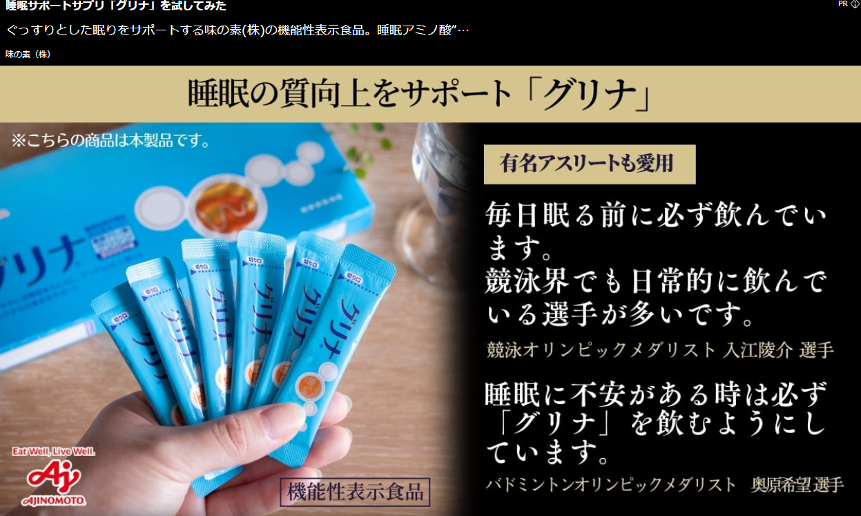 睡眠を制する者が健康を制す『味の素:グリナ』