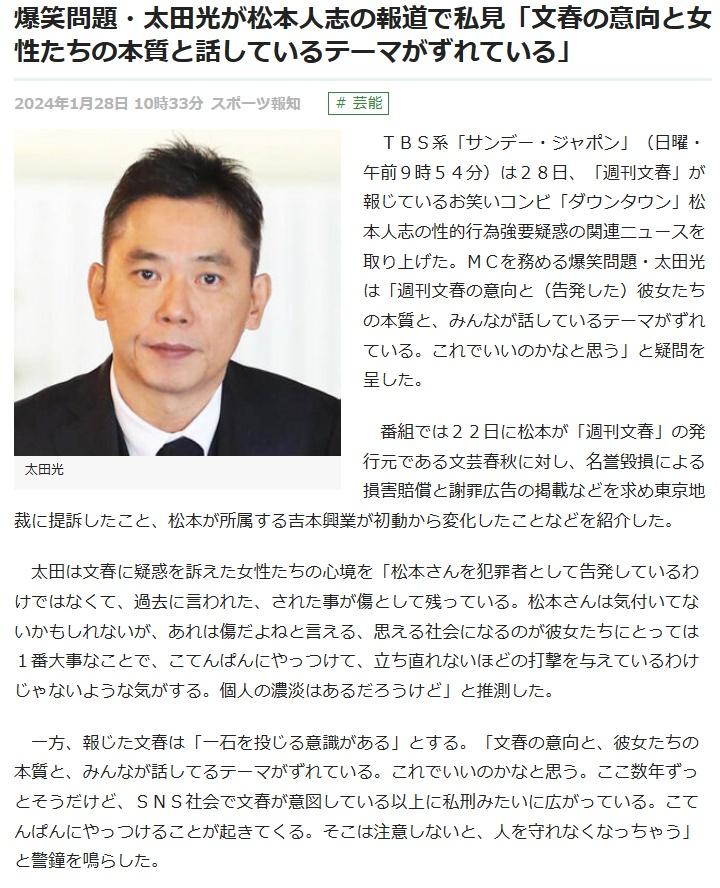 爆笑太田「なんか松本人志を徹底的に潰そうって流になって来てないか?ずれてるぞ」