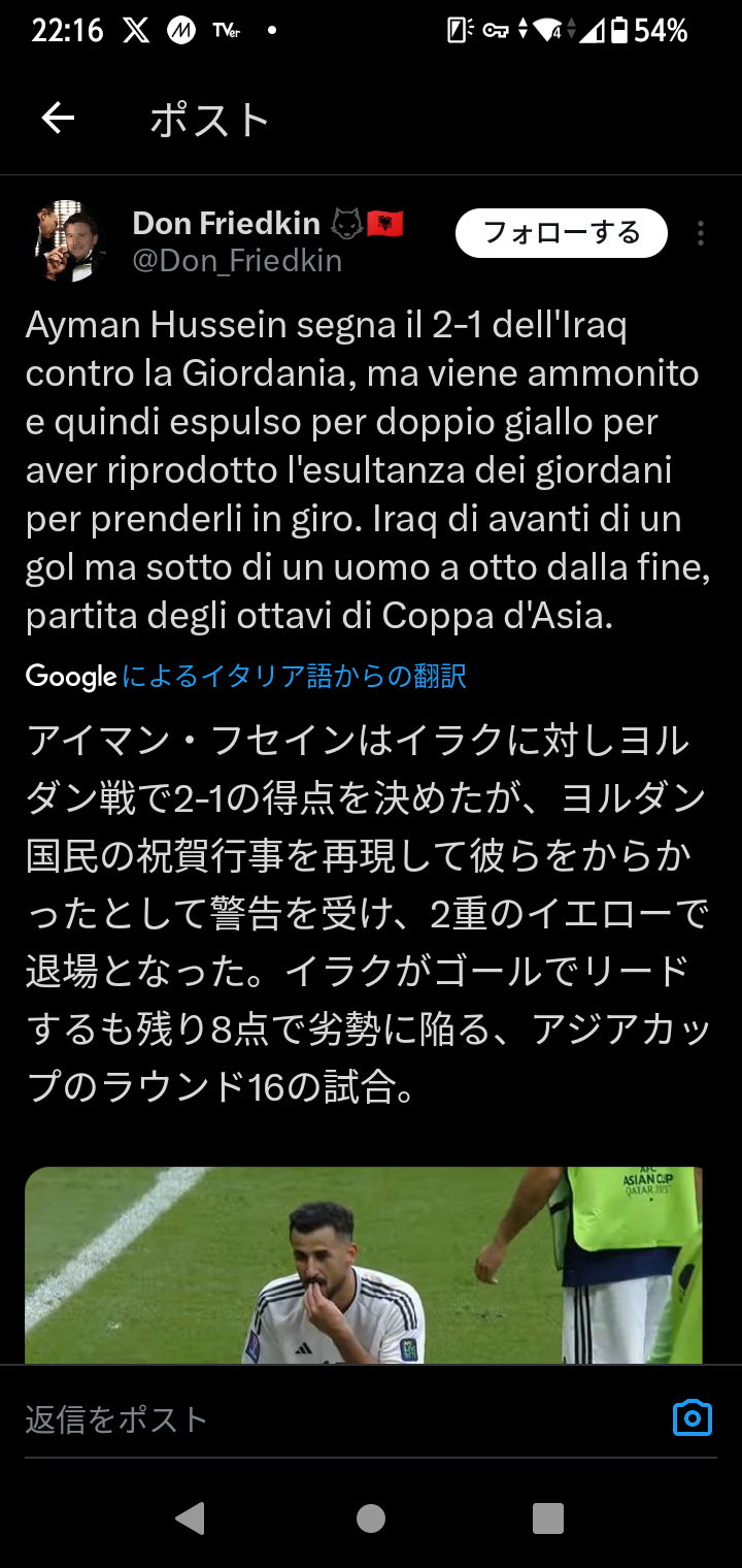 【悲報】イラクFW、意味不明な理由で退場になったと思ったら正当な理由があったwwwwwwww
