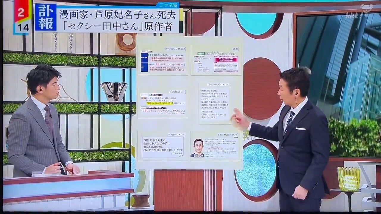 セクシー田中さんの芦原先生について、いつものように日テレのコメントだけ信じて報じる宮根氏とSNSなどで調べてくる山田ルイ53世さん。しっかり伝えてくれた。
