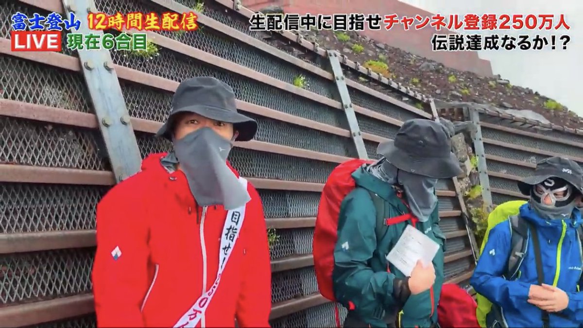 江頭2:50さんががYouTubeチャンネル登録者数250万人を目指し、富士山登山を生配信しています。
