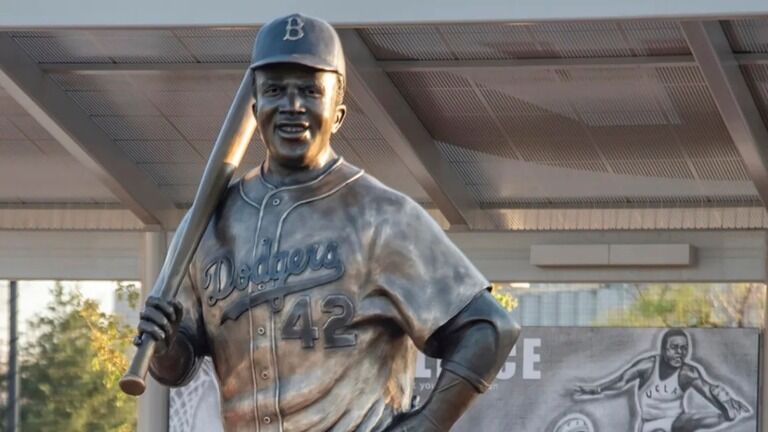 ジャッキー・ロビンソンさんの実物大の像は、野球をやりたい子どもを応援する非営利団体「リーグ42」が5万ドル(約740万円)の寄付を集めて球場に設置していた。同団体の名称はロビンソンさんの背番号にちなむ。
