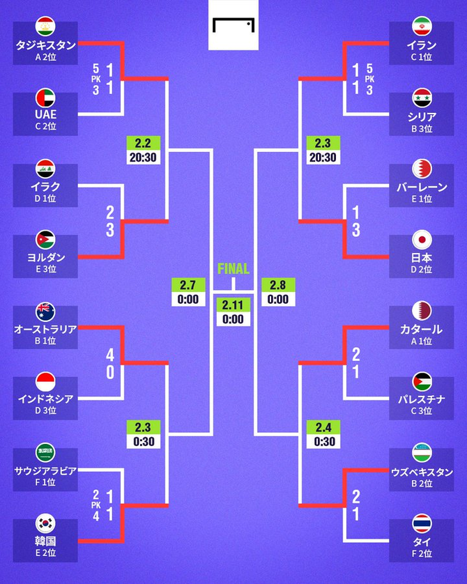 【速報】アジアカップベスト8組み合わせて決定!楽しみすぎる展開wwwwwwwww