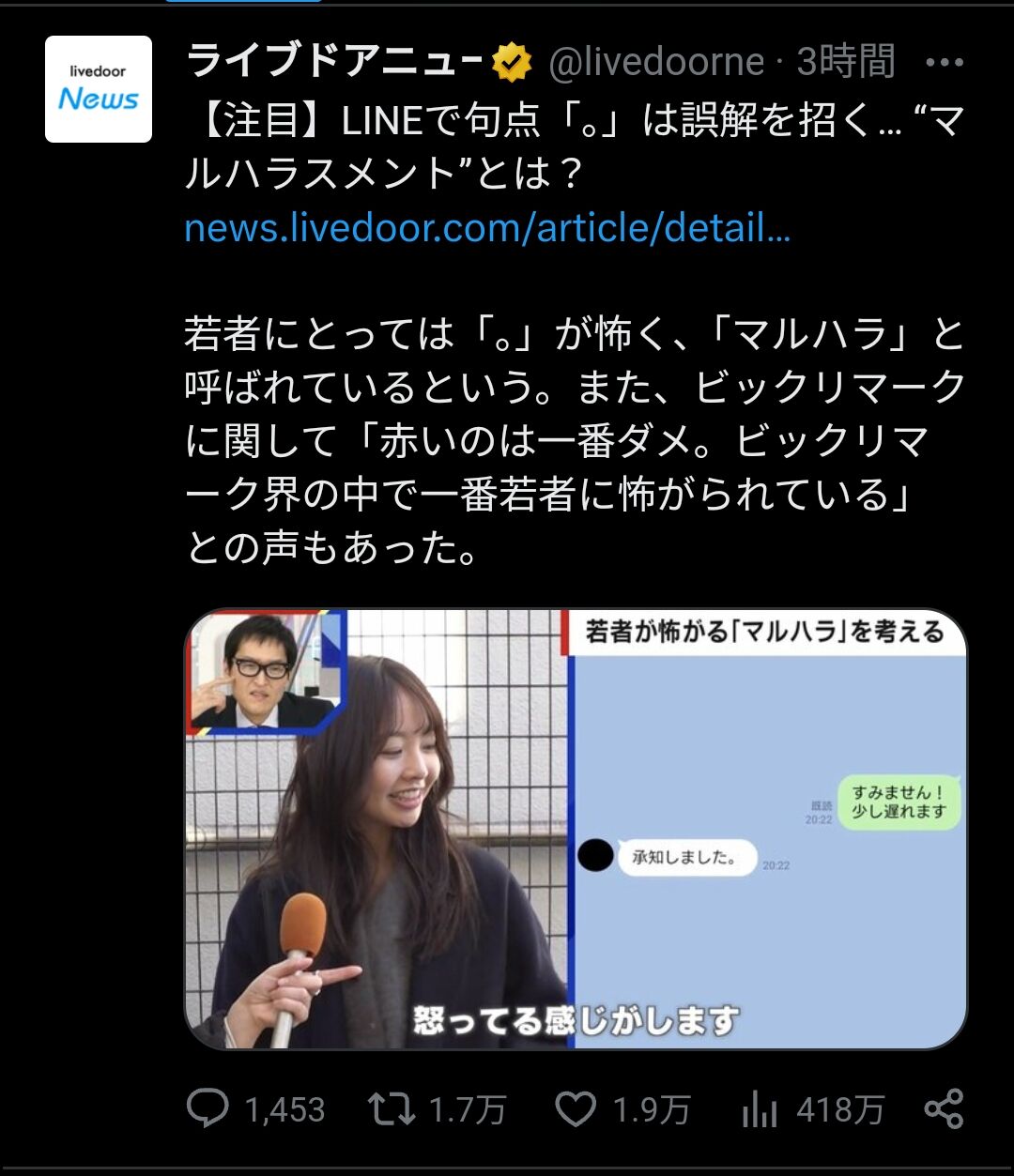 【悲報】LINEで句点「。」をつけるマルハラがZ世代で問題に