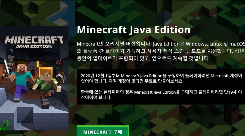 5日業界によれば、マイクロソフトは最近マインクラフトのホームページを通じて「韓国にいるプレイヤーの場合、マインクラフトJavaエディションを購入して利用するならば、満19歳以上ではなければならない」という内容を告知した。