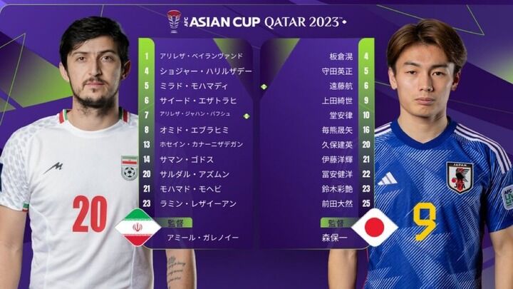 日本代表は現地2月3日、カタールで開催されているアジアカップの準々決勝でイラン代表と激突する。試合に先立ち、スターティングメンバーが発表された。
